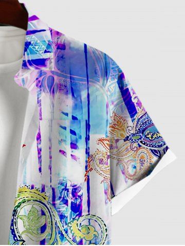 Chemise à Manches Courts> Chemise Boutonnée Ethnique Colorée Cachemire Imprimé avec Poche de Grande Taille