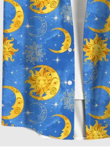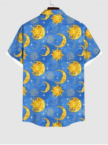 Chemise Boutonnée Etoile Lune et Soleil Imprimés avec Poche de Grande Taille à Paillettes pour Homme - Bleu - Bleu