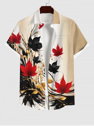 Chemise à Manches Courts> Chemise Boutonnée Feuille D'Encre Eclaboussée Imprimée de Grande Taille avec Poche