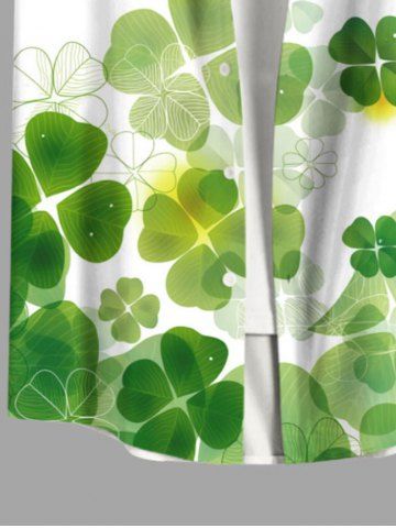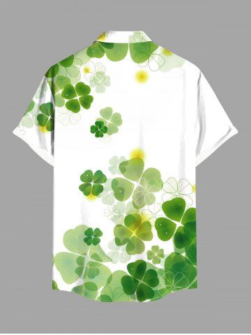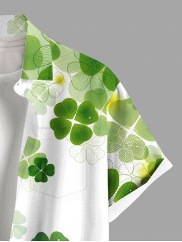 Chemise Boutonnée Feuille Trèfle Imprimé avec Poche de Grande Taille pour Homme - Blanc - Blanc