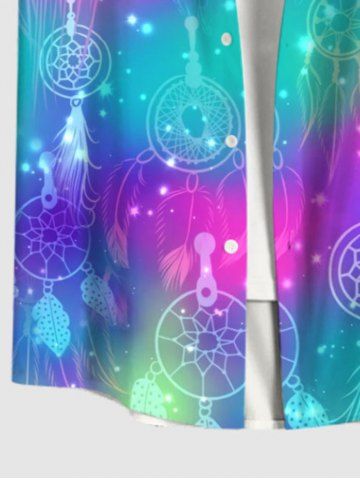Chemise Boutonnée Galaxie Attrape-Rêves Imprimées avec Poche de Grande Taille à Paillettes - Multi-a - L