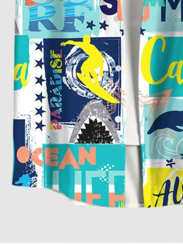 Chemise Boutonnée Géométrique Eclaboussée Imprimée en Blocs de Couleurs avec Poche de Grande Taille pour Homme - Multi-a - M