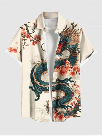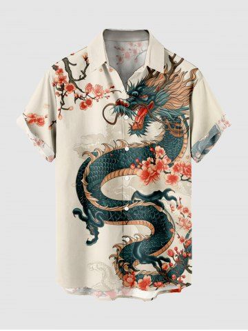 Chemise à Manches Courts> Chemise Boutonnée Imprimé Branche Florale Grande Taille avec Poche pour Homme