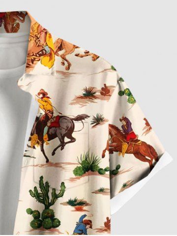 Chemise Boutonnée Imprimé Cactus et Coeur Grande Taille avec Poche - Café Lumière - Xl
