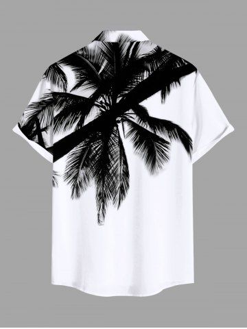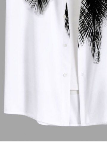 Chemise Boutonnée Imprimé Cocotier à Deux Tons Grande Taille avec Poche pour Homme - Blanc - Blanc