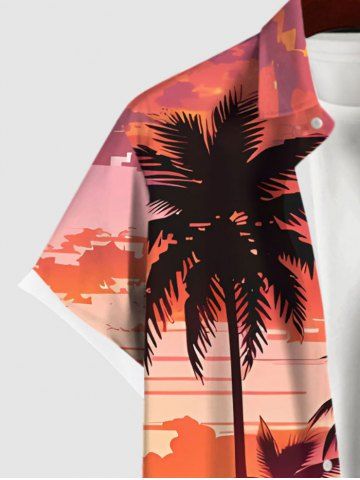 Chemise à Manches Courts> Chemise Boutonnée Imprimé Cocotier Derrière la Plage Grande Taille avec Poche