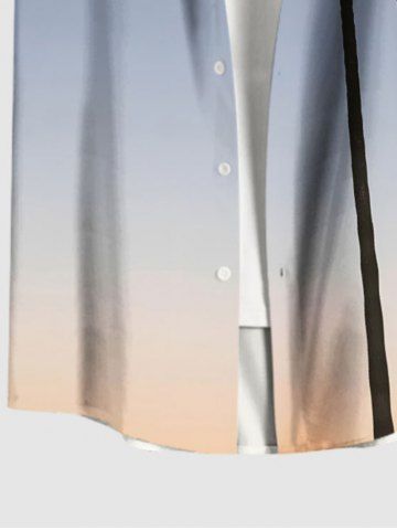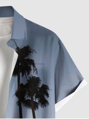 Chemise Boutonnée Imprimé Cocotier et Ciel Grande Taille avec Poche - Bleu Clair - Bleu Clair