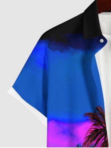 Chemise à Manches Courts> Chemise Boutonnée Imprimé Cocotier et Galaxie Colorée Grande Taille avec Poche