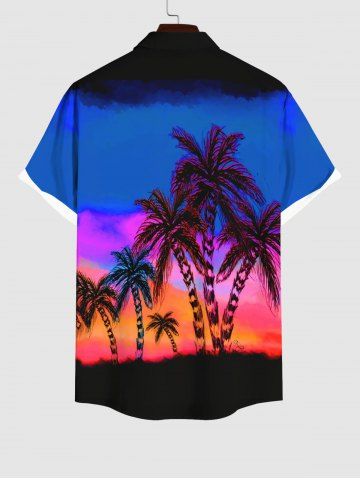 Chemise Boutonnée Imprimé Cocotier et Galaxie Colorée Grande Taille avec Poche - Multi-a - S