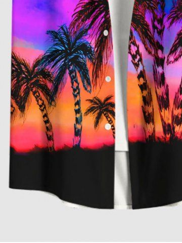 Chemise Boutonnée Imprimé Cocotier et Galaxie Colorée Grande Taille avec Poche - Multi-a - 2xl