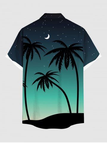 Chemise Boutonnée Imprimé Cocotier et Galaxie Grande Taille avec Poche - Vert - Vert