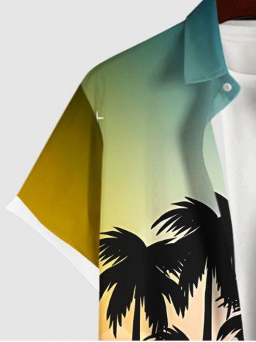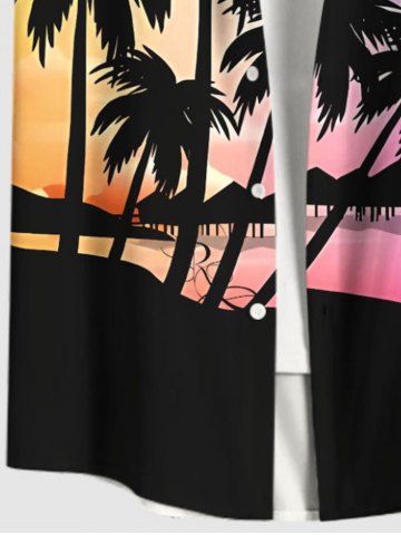 Chemise Boutonnée Imprimé Cocotier et Lune Grande Taille avec Poche - Multi-a - M