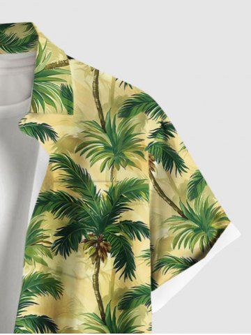 Chemise Boutonnée Imprimé Cocotier Grande Taille avec Poche - Jaune Clair - S