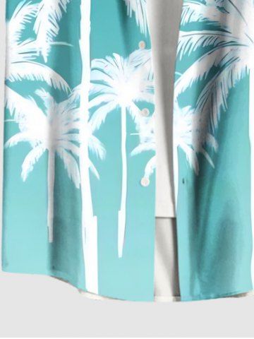 Chemise Boutonnée Imprimé Cocotier Grande Taille avec Poche - Vert - Vert