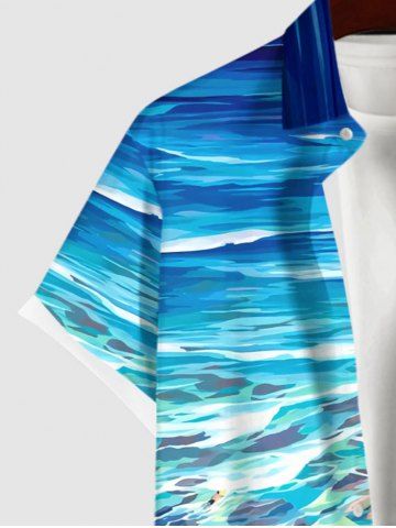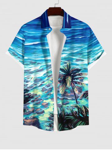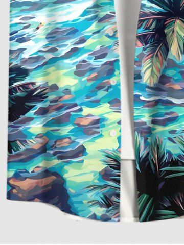 Chemise Boutonnée Imprimé Cocotier Hawaiien avec Poche Grande Taille pour Homme - Multi-a - Xl