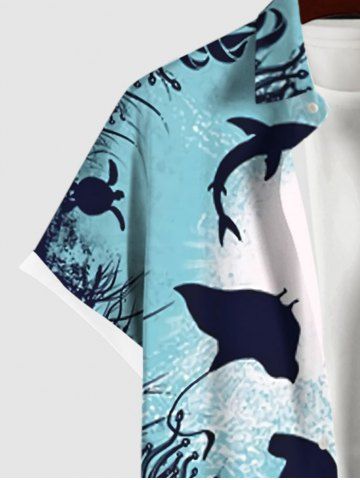 Chemise Boutonnée Peinture Eclaboussée Requin de Mer Imprimés de Grande Taille avec Poche - Multi-a - 2xl