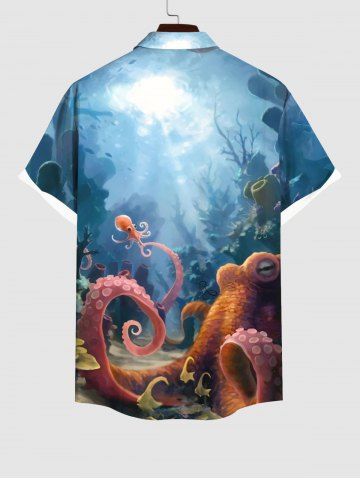Chemise à Manches Courts> Chemise Boutonnée Pieuvre Imprimée de Grande Taille avec Poche Cousue pour Homme