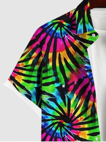 Chemise Boutonnée Teintée Colorée Rayée Imprimée avec Poche de Grande Taille pour Homme - Multi-a - M