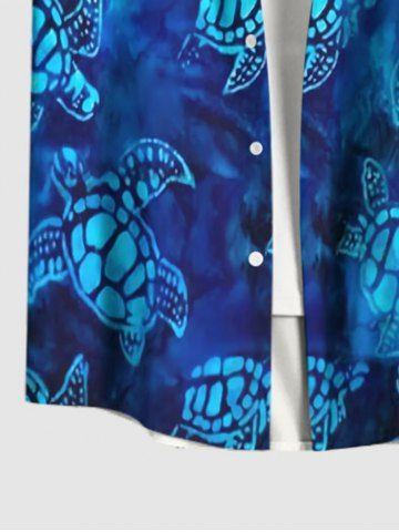 Chemise Brillante D'Océan Boutonnée Ombrée Imprimée avec Poche pour Homme - Bleu - Bleu