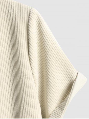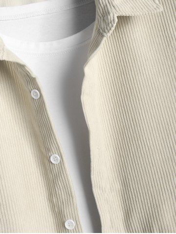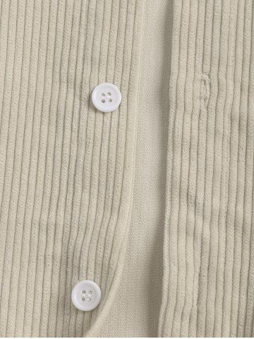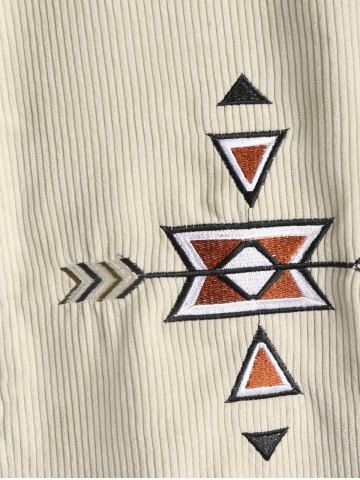 Chemise Brodée en Blocs de Couleurs Style Ethnique à Manches Courtes en Velours Côtelé - Café Lumière - L