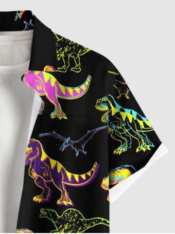 Chemise Colorée Dinosaure Imprimé avec Poche de Grande Taille avec Bouton - Noir - Noir