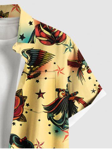 Chemise à Manches Courts> Chemise D'entraînement Imprimé Aigle Floral et Crâne Grande Taille avec Poches
