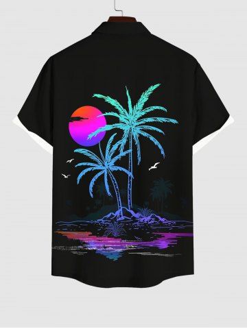 Chemise D'été à Boutons Imprimé Cocotier et Coucher du Soleil pour Homme - Multi-a - 4xl