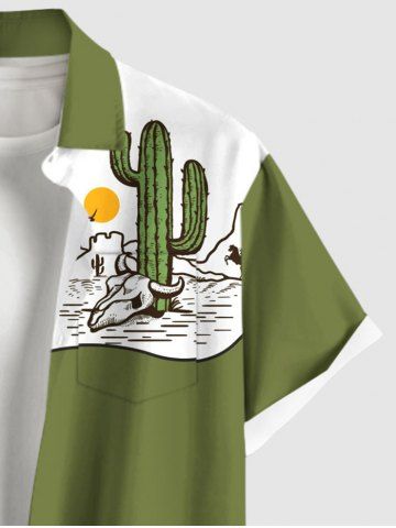 Chemise D'Eté Tête de Bateau Cactus Imprimé avec Poche de Grande Taille pour Homme - Vert - Vert