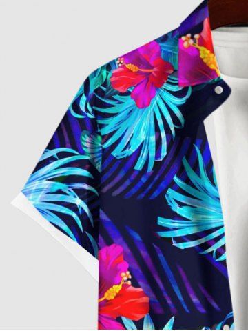 Chemise D'Hibiscus et Feuille Tropicale Imprimées avec Poche de Grande Taille pour Homme - Multi-a - S