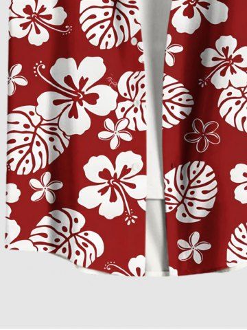 Chemise D'Hibiscus et Feuille Tropicale Imprimées avec Poche de Grande Taille pour Homme - Rouge - Rouge