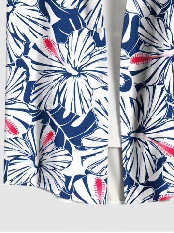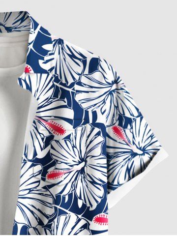 Chemise à Manches Courts> Chemise D'Hibiscus et Fleur Imprimés de Grande Taille avec Poche en Avant