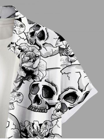 Chemise de Grande Taille avec Boutons Imprimé Fleurs et Crânes pour Hommes - Blanc - Blanc