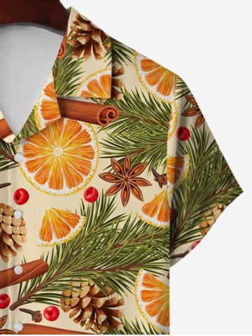 Chemise à Manches Courts> Chemise de Plage Hawaiien Imprimé Orange Cannelle avec Boutons Grande Taille
