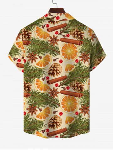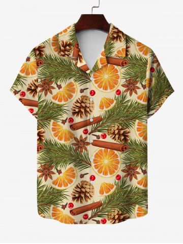 Chemise à Manches Courts> Chemise de Plage Hawaiien Imprimé Orange Cannelle avec Boutons Grande Taille