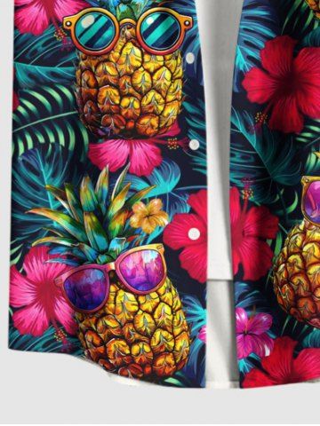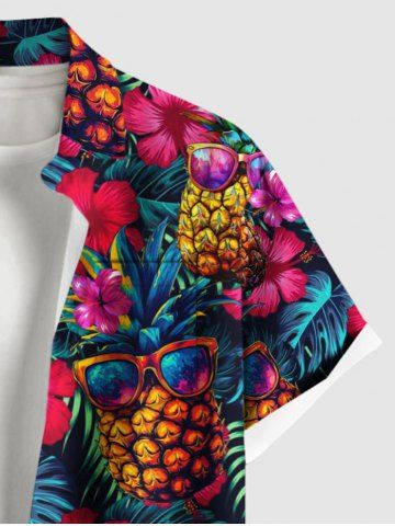Chemise de Soleil Hawaii Fleur Feuille Tropicale et Fleur Imprimés avec Poche de Grande Taille pour Homme - Multi-a - L