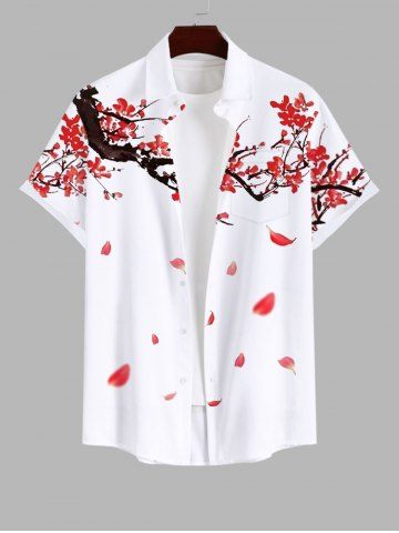 Chemise à Manches Courts > Chemise de Tressé Boutonnée Pétale Imprimé avec Poche de Grande Taille pour Homme