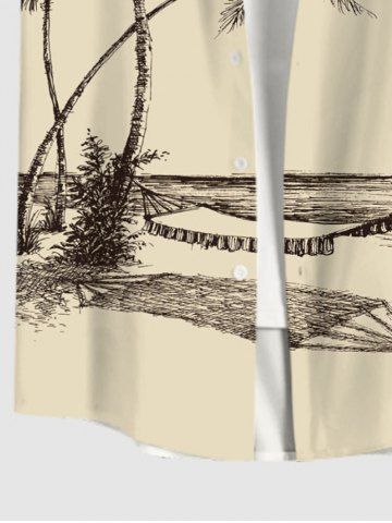 Chemise Décontractée Arbre Noix de Coco Imprimé avec Poche de Grande Taille pour Homme - Café Lumière - L