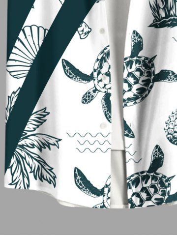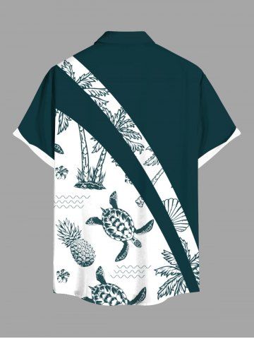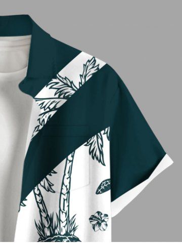 Chemise Décontractée Arbre Noix de Coco Pasage D'Ananas Imprimé avec Poche de Grande Taille - Vert Profond - S
