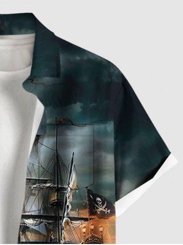 Chemise à Manches Courts> Chemise Décontractée Bateau Château Océan Flocon de Neige Imprimés avec Poche de Grande Taille pour Homme