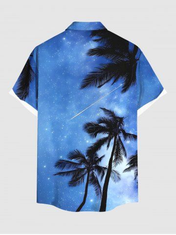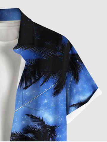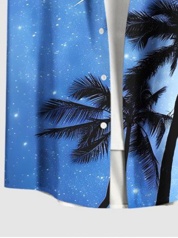 Chemise Décontractée Boutonnée Arbre Noix de Coco et Galaxie Imprimés de Grande Taille avec Poche - Bleu Ciel - Bleu Ciel