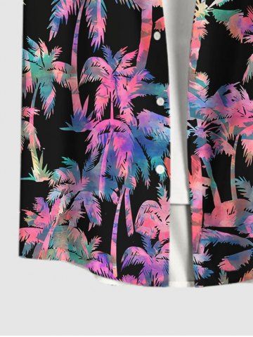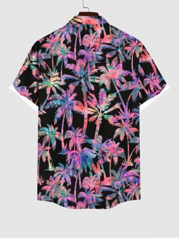 Chemise Décontractée Boutonnée Cocotier Imprimé avec Poche de Grande Taille pour Homme - Noir - Noir