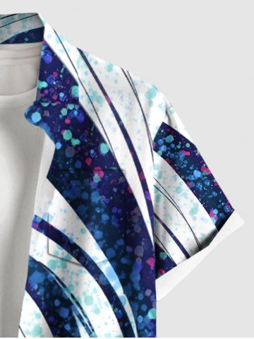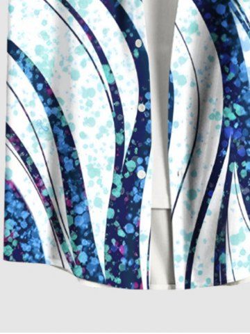 Chemise Décontractée Boutonnée en Blocs de Couleurs à Pois Imprimée avec Poche de Grande Taille pour Homme - Bleu - Bleu