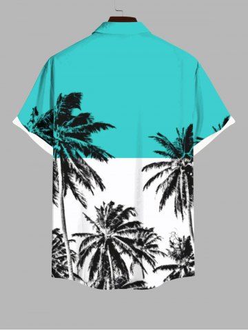 Chemise à Manches Courts> Chemise Décontractée Boutonnée en Blocs de Couleurs Arbre de Noix de Coco Imprimé Grande Taille avec Poche