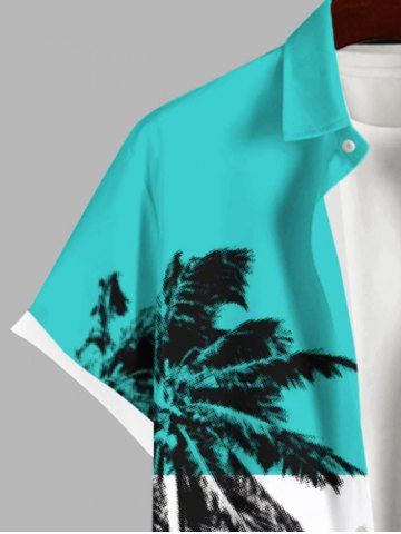 Chemise à Manches Courts> Chemise Décontractée Boutonnée en Blocs de Couleurs Arbre de Noix de Coco Imprimé Grande Taille avec Poche