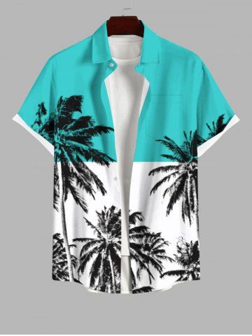 Chemise à Manches Courts > Chemise Décontractée Boutonnée en Blocs de Couleurs Arbre de Noix de Coco Imprimé Grande Taille avec Poche