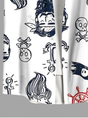 Chemise Décontractée Boutonnée Feuille Amusante Imprimées avec Poche Cachée Grande Taille pour Homme - Blanc - Blanc