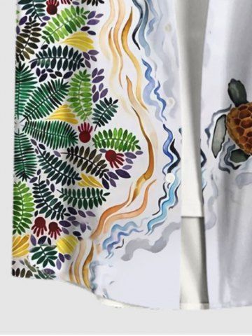 Chemise Décontractée Boutonnée Feuille D'Océan et Noix de Coco Imprimés avec Poche de Grande Taille pour Homme - Multi-a - 2xl