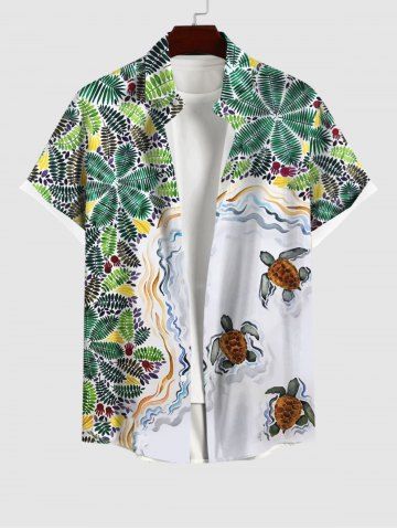 Chemise Décontractée Boutonnée Feuille D'Océan et Noix de Coco Imprimés avec Poche de Grande Taille pour Homme - Multi-a - 3xl