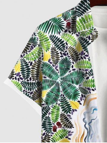 Chemise Décontractée Boutonnée Feuille D'Océan et Noix de Coco Imprimés avec Poche de Grande Taille pour Homme - Multi-a - 4xl
