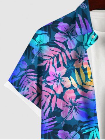 Chemise Décontractée Boutonnée Feuille de Noix de Coco Fleurie Imprimée avec Poche de Grande Taille pour Homme - Multi-a - M